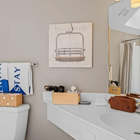 The Telluride property includes a bathroom with a separate toilet and a shower. Hair dryers and towels are also part of the bathroom amenities.