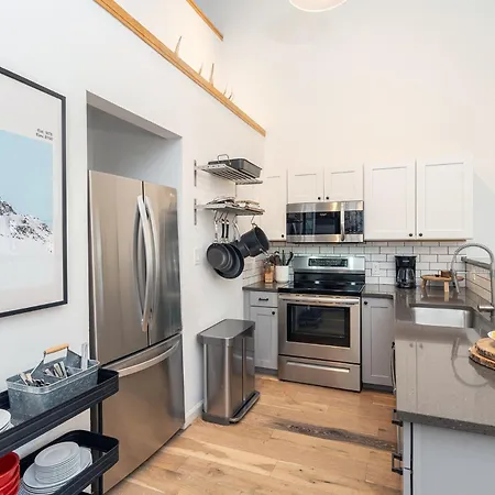 The 2-room Chalet Chic Condo, Short Walk To Lift 7, Covered Parking Condo Telluride is just 6 minutes on foot from Clarks Market and welcomes guests with a hot tub. The 1200 m^2 apartment is nestled in a historical area, while Lift #7 is only 150 metres away.
