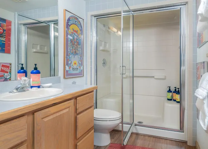 Telluride Mountain VillageSituated about 10 minutes' drive from Oak Street Lift, the welcoming 2-bedroom Bear Creek Lodge 105 By Alpine Lodging Telluride provides guests with Wi-Fi for either business or leisure. Black Bear…View details+More detailsCheck rates - Slopeside Paradise Penthouse At Lift 7, Views, Fireplace, Deck, Hot Tub Condo