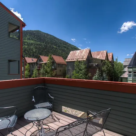 A patio here boasts the views of mountain. The Telluride villa includes a bathroom with a washing machine.