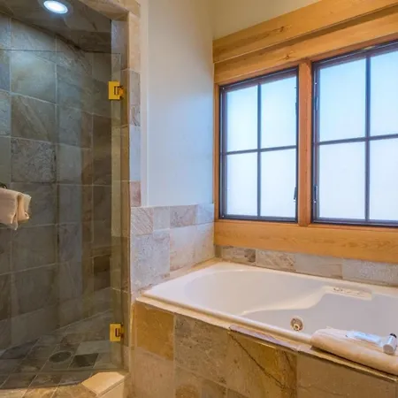 The villa includes a bathroom with a hot tub and a shower.