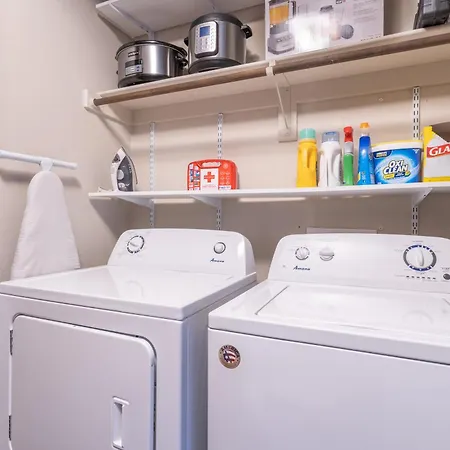Sophia Sundance By Exceptional Stays apartment features a bathroom with a hairdryer, bath sheets, and towels. Moreover, there is a washing machine as well.