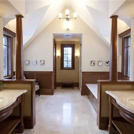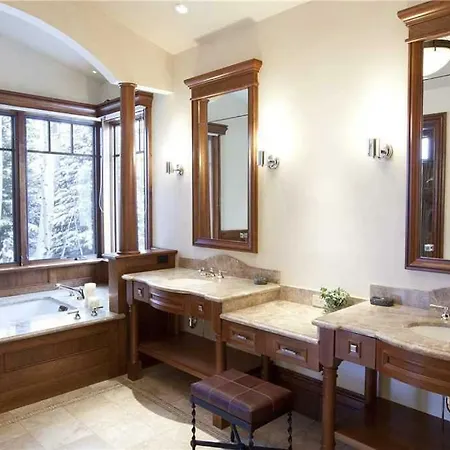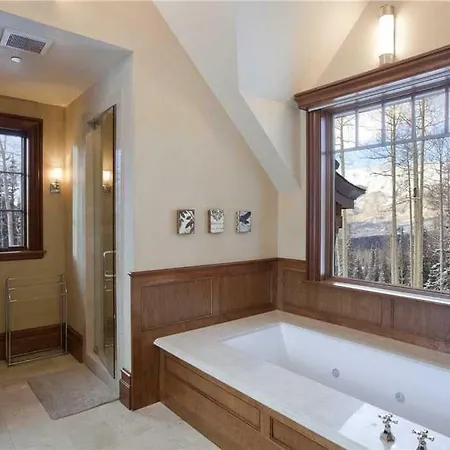 The 9-room Hood Park Manor Home Telluride, located about 3 miles from Alta Lakes, invites guests to relax in a Jacuzzi bathtub.