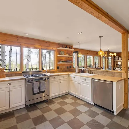 An equipped kitchen with coffee and tea making equipment, a kitchenware, and glassware is available during your stay. Telluride Regional airport is reachable within a 15-minute drive from Luxury Mountain Retreat With Hot Tub And Views Villa.