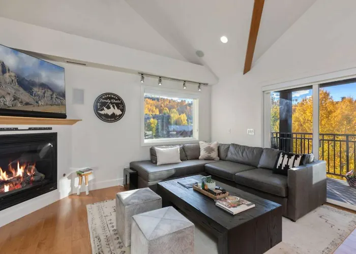 The 3-bedroom Outlaws Creek Villa Telluride is situated merely 5 minutes' stroll from Sunshine Express Chair Lift #10, featuring such comforts as Wi-Fi and a car park.
